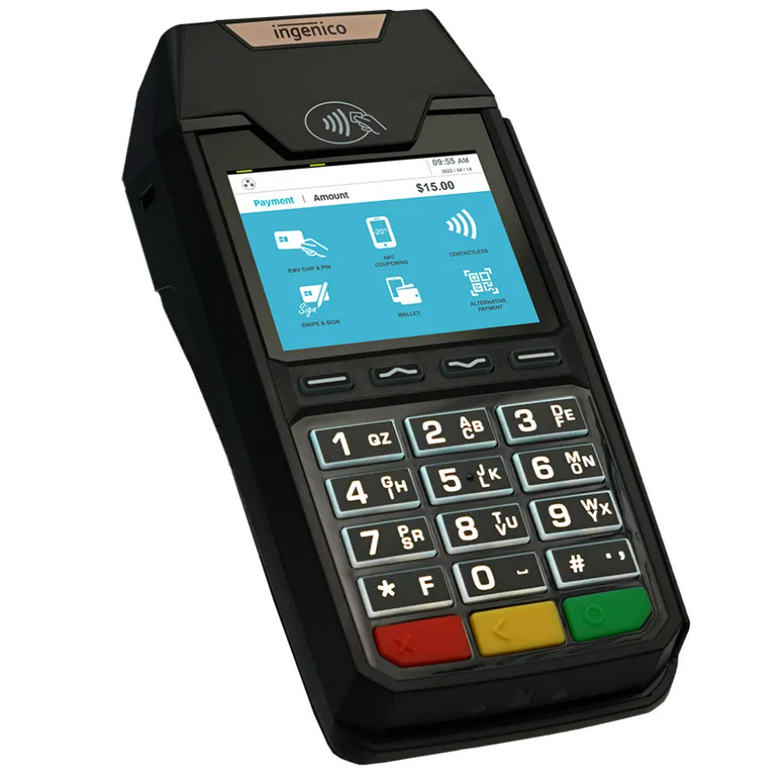 Терминал поддерживает приём банковских карт (магнитная полоса, EMV chip&PIN), бесконтактные платежи (NFC), а также мобильные кошельки. Соответствует современным требованиям безопасности и может использоваться в интеграции с банковским ПО и кассовыми системами.
