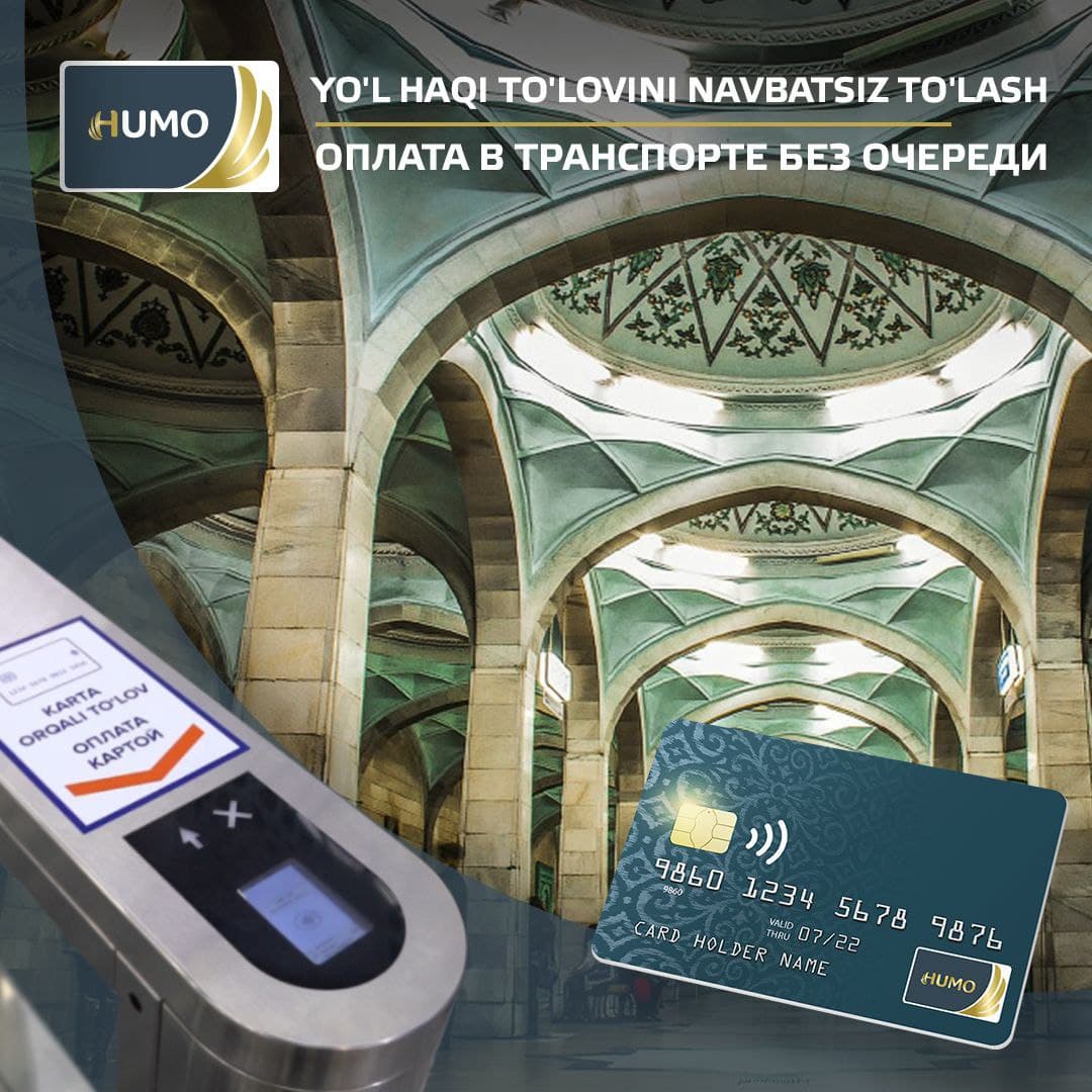 Не нужно стоять в очереди в кассе метро, когда у вас есть карта HUMO! Достаточно коснуться ею валидатора на турникете, и оплата за проезд спишется автоматически.